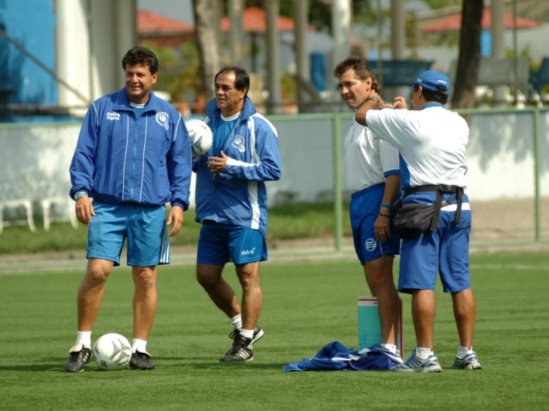 En su etapa como entrenador, Rodríguez (Izq.) integró el cuerpo técnico de la Selección Mayor del mexicano Carlos de los Cobos (segundo desde la Der.), junto a otro exmundialista, José Luis "Chelis" Rugamas (segundo desde la izq.). / Foto Archivo