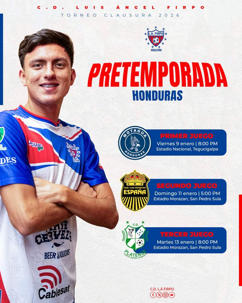 Firpo abrirá su gira el viernes 9 de enero enfrentando al Motagua, uno de los clubes más laureados de Honduras, en el Estadio Nacional de Tegucigalpa a las 8:00 p.m. Posteriormente, el domingo 11 a las 5:00 p.m., se medirá al Real España en el Estadio Morazán de San Pedro Sula. Finalmente, cerrará su participación el martes 13 ante Platense, también en el Morazán, a las 8:00 p.m.