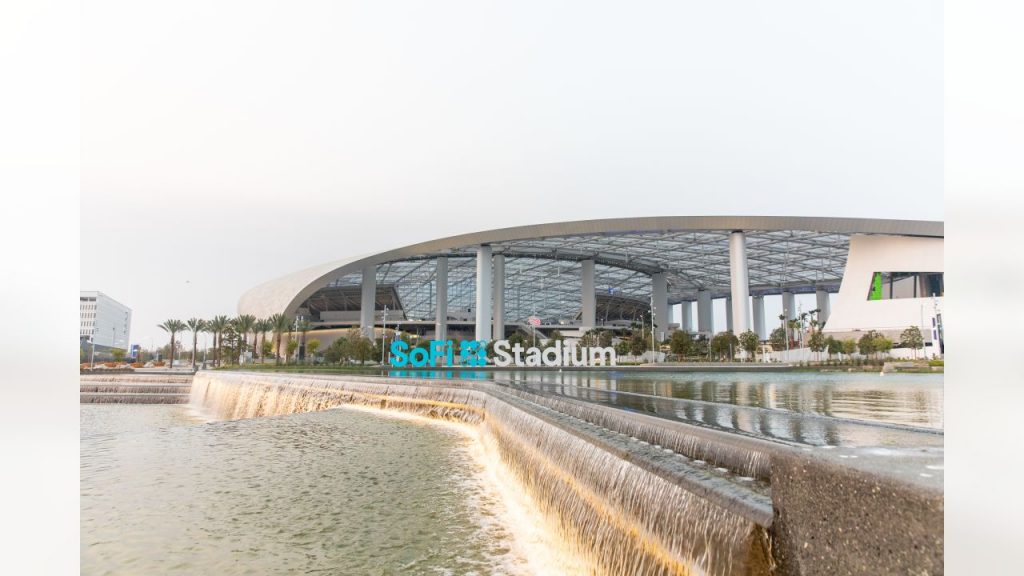 Vista exterior del SoFi Stadium. Foto del sitio web de los Rams/Hanna A. Yamamoto.