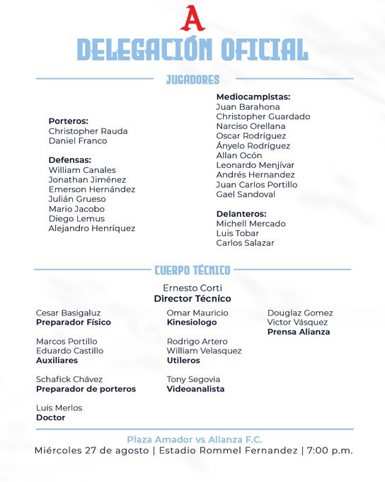Históricamente, no existen enfrentamientos recientes entre Alianza y Plaza Amador, lo cual añade incertidumbre al duelo. Esta falta de antecedentes puede jugar a favor o en contra, dependiendo de cómo se adapte el equipo albo al contexto panameño. El duelo será a las 7 p.m. en el estadio Rommel Fernández.
