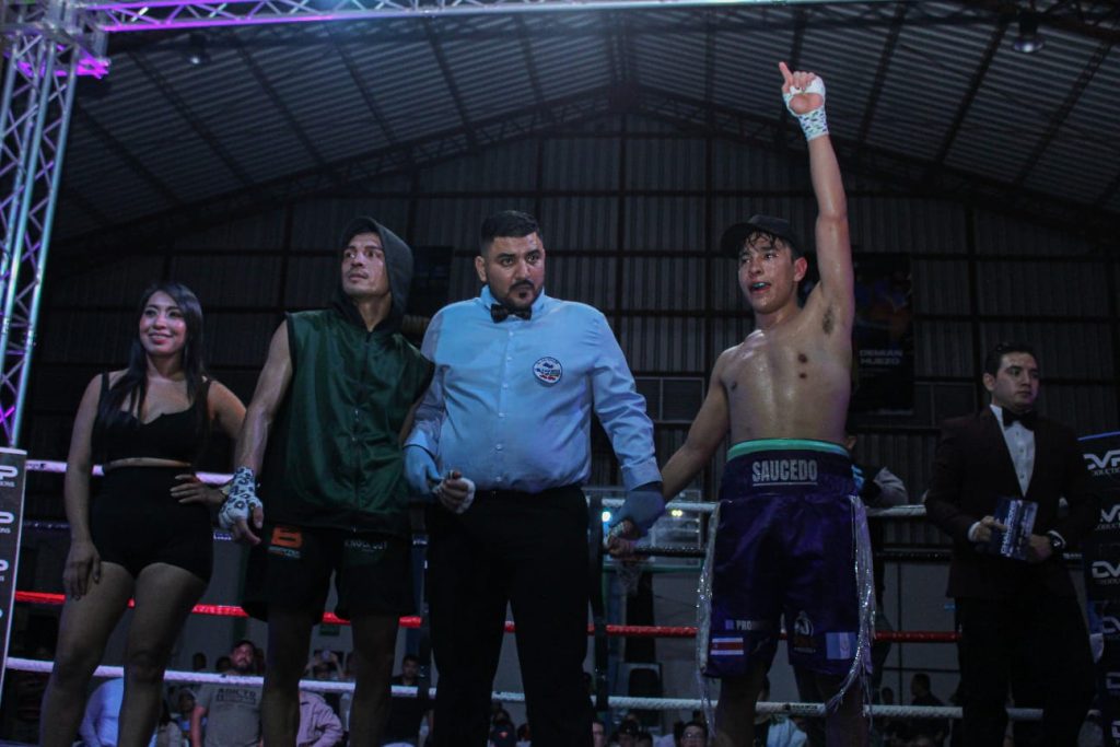 El guatemalteco Gabriel Saucedo Quiroz sorprendió y dominó al salvadoreño Marvin Martínez, ganando por decisión unánime (39-37, 40-36, 40-36). Fue su primera victoria profesional y una de las peleas más intensas de la noche.