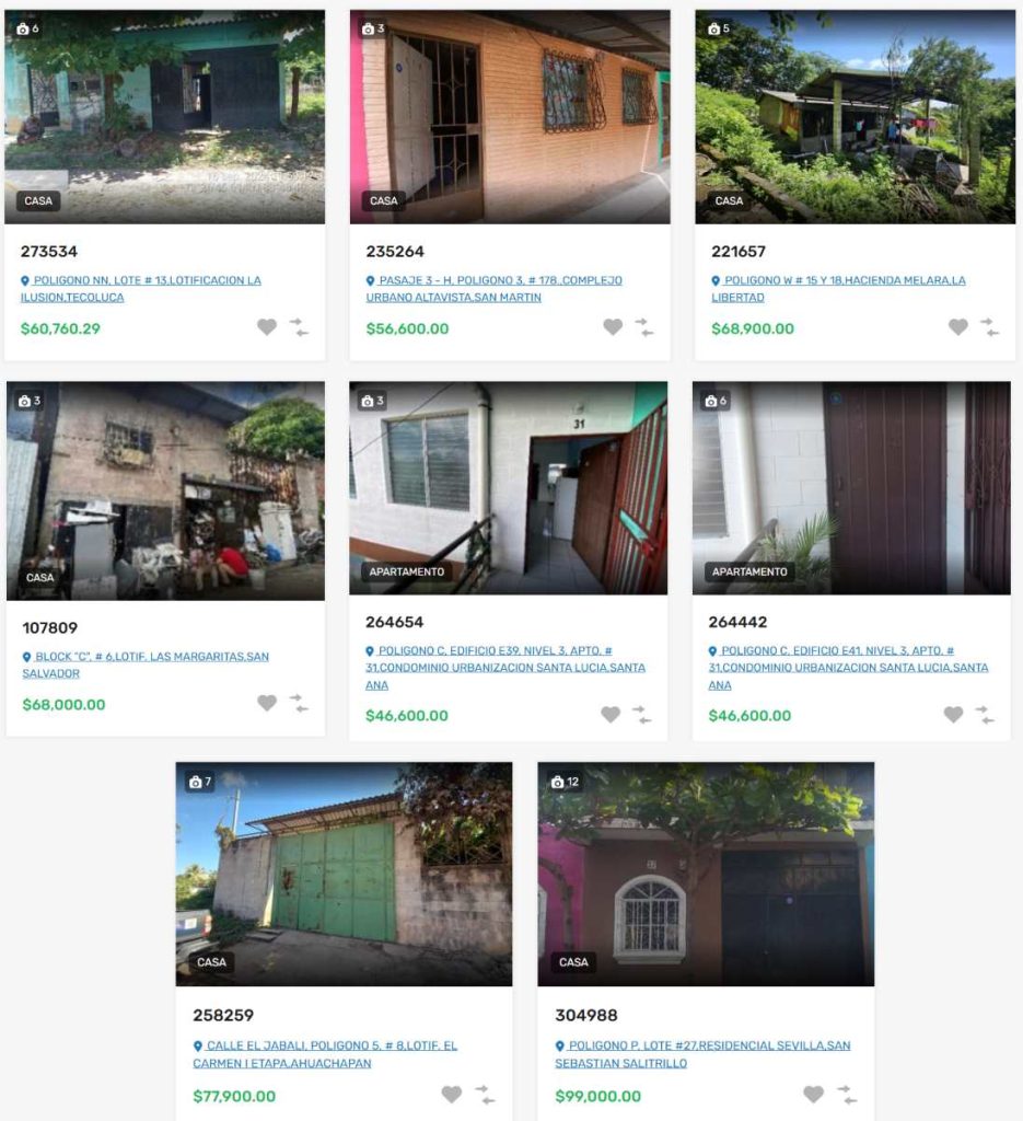 Se trata de propiedades que han sido recuperadas por la institución y que vuelven a ponerse a la venta. Actualmente, según información publicada en el portal web del FSV, el listado incluye casas y apartamentos con precios que van desde los $46,600 hasta los $99,000, dependiendo de la ubicación y características del inmueble.