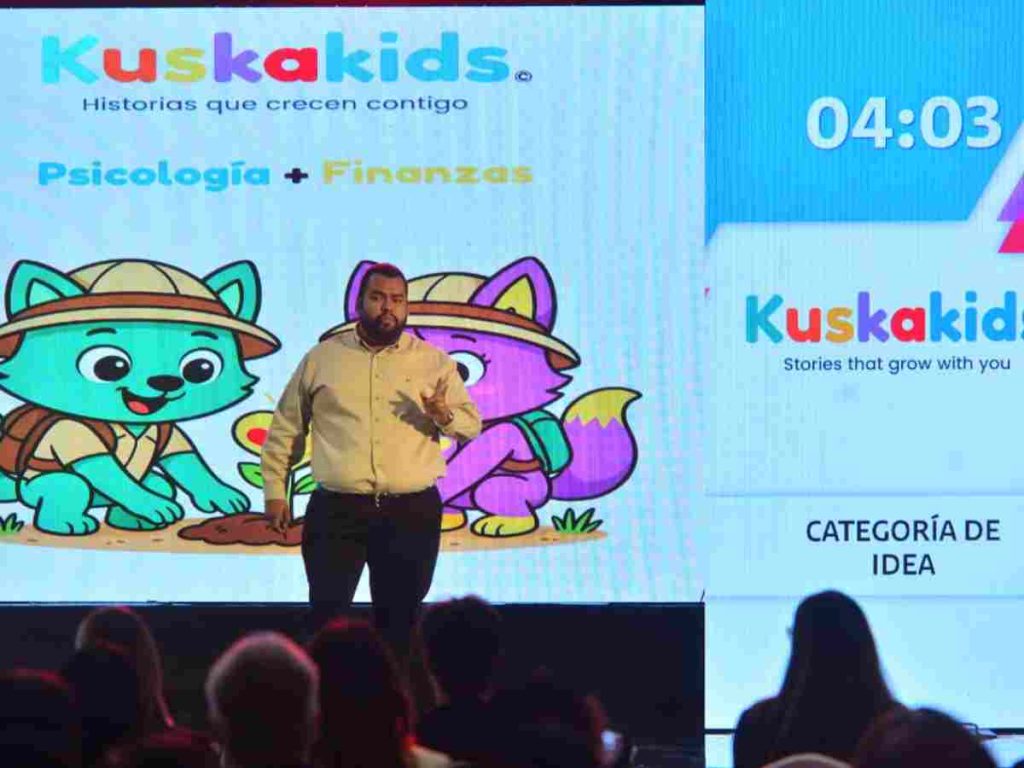 Pitch de Kuskakids, por Gustavo Calderón: "Plataforma educativa que ayuda a fortalecer habilidades blandas, capacidad de conocer sus emociones, desarrollar su autoestima…combinamos la plataforma digital con teatro de títeres. Nuestro público objetivo incluye centros escolares, padres, empleadores, empresas y niños mayores de 5 años.”