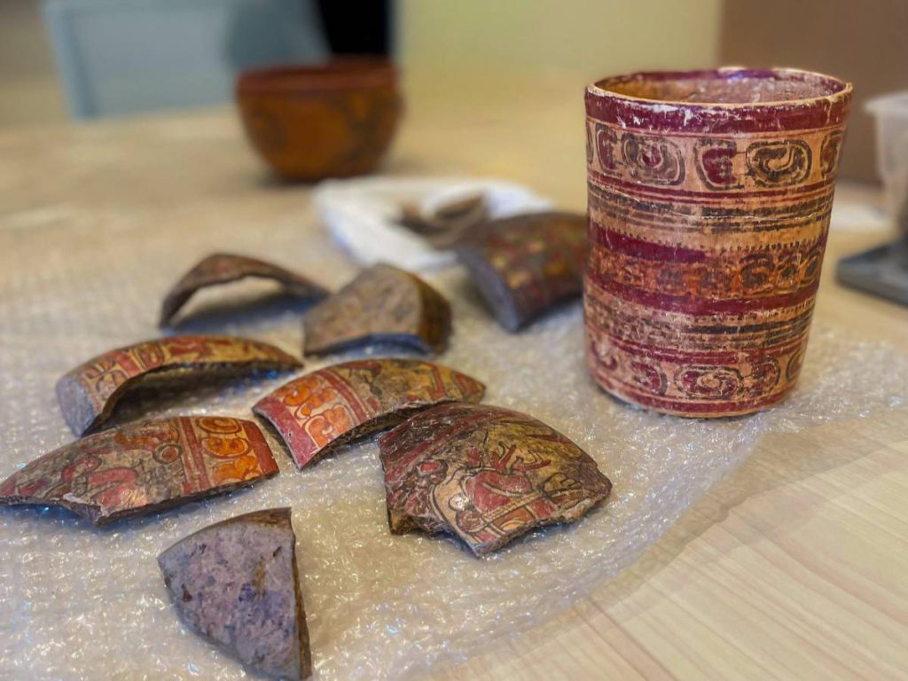 Fragmentos de cerámica Copador exhibidos tras su repatriación, gracias al esfuerzo articulado entre autoridades culturales y diplomáticas.