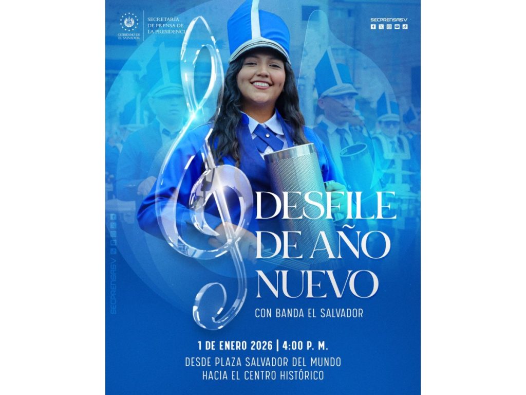 El Desfile de Año Nuevo con Banda El Salvador se realizará el 1 de enero de 2026, desde la plaza Salvador del Mundo hasta el Centro Histórico. Más de mil jóvenes músicos llenarán de ritmo y color las calles para dar la bienvenida al nuevo año.