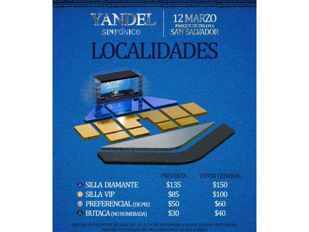 Yandel llegará a El Salvador con su espectáculo Yandel Sinfónico, una propuesta que fusiona sus éxitos de reguetón con una orquesta en vivo. El concierto se realizará el 12 de marzo de 2026 en el Parque Nacional de Pelota Saturnino Bengoa, en San Salvador. La producción estará a cargo de Cosmo Latam y promete un montaje de alto nivel. Las entradas ya están disponibles en Fun Capital, tras agotarse la preventa. Los precios van desde $40 hasta $150, sin incluir cargos por servicio. Será una noche distinta para los fans, con una puesta en escena innovadora y musicalmente renovada.
