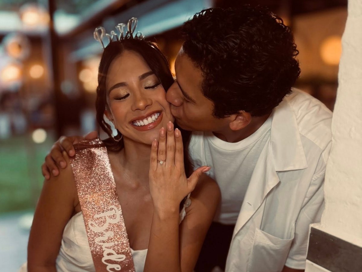 Al finalizar el video, la pantalla proyectó la pregunta: “¿Quieres casarte conmigo?”. Segundos después, Emerson apareció en la sala de cine, con un ramo de girasoles y el anillo en mano. Con una sonrisa nerviosa, se arrodilló frente a ella.