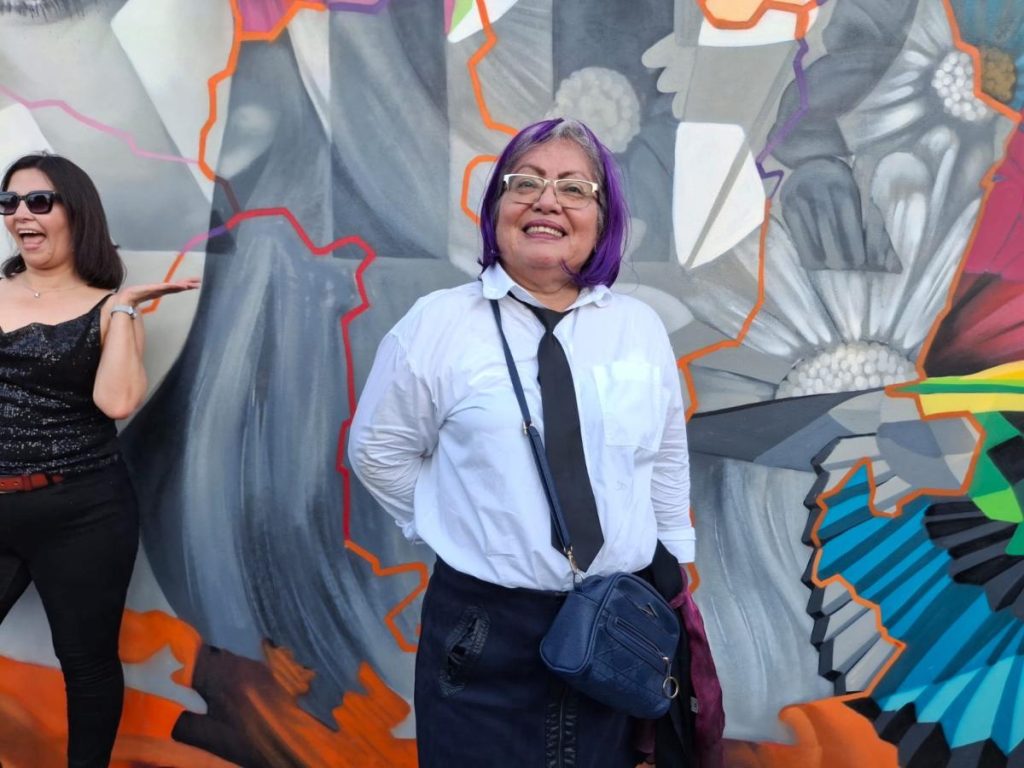 Nelcy de Vásquez posa frente al mural de Shakira y cuenta que asistió al concierto gracias al apoyo de sus amigos de TikTok, quienes le ayudaron con la entrada y el Uber. / Foto elsalvador.com