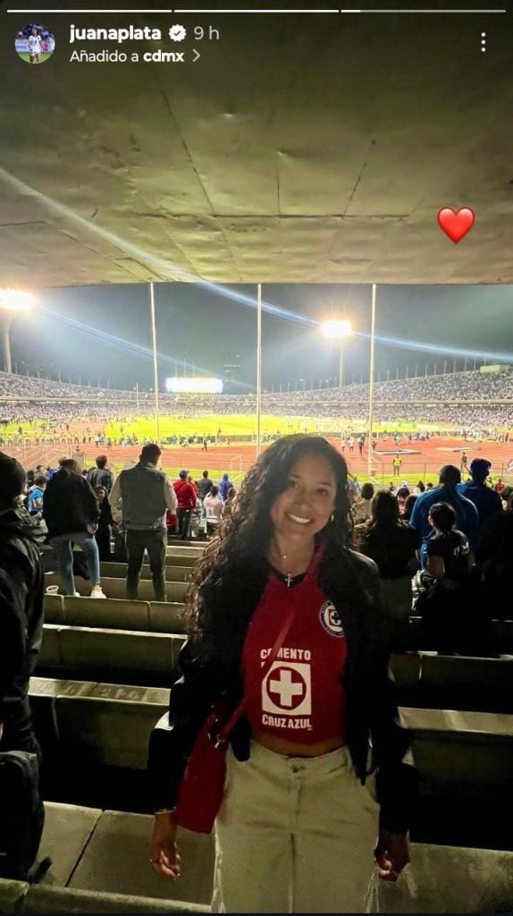 Al partido de ayer en la Ciudad de México se hizo presente la jugadora salvadoreña del equipo femenino de la máquina cementera, Juana Plata, quien no se quedó en casa y fue a apoyar al Cruz Azul.