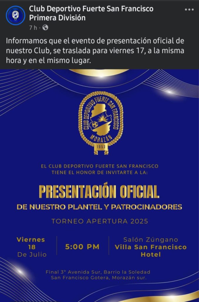El torneo Apertura 2025 está a a unas horas para debutar. Lo hará con tres partidos sábado y tres domingo. Y aunque la mayoría de equipos cumplió con una presentación de su plantel para la campaña, días atrás, todavía hay uno que no y que quiere hacerlo. El Fuerte San Francisco será el último en cumplirlo.