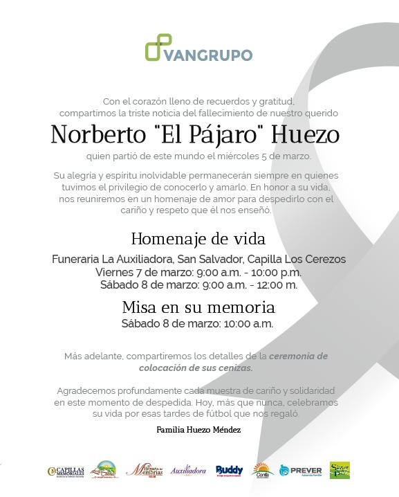 La muerte del exfutbolista y exmundialista salvadoreño, Norberto "Pájaro" Huezo, este miércoles 5 de marzo, dejó mensajes sentidos en redes para despedirse de una leyenda nacional. Pero muchos también esperan el momento para darle el último adiós.