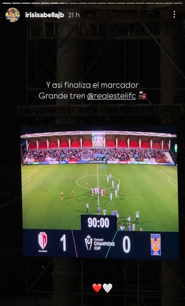 Al finalizar el juego en Nicaragua, la embajadora del Real Estelí, Iris Isabella, le tomó una fotografía a la pantalla electrónica del estadio Independencia con el resultado histórico a favor del Tren del Norte.