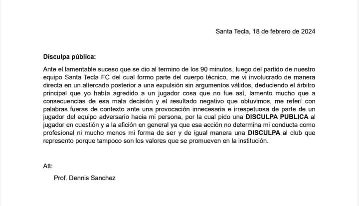 Sin embargo, en horas de la noche del mismo domingo, Sánchez colocó un comunicado en sus redes sociales donde se disculpaba por la situación, aduciendo que por lo que dijo fue una "mala decisión" en su expulsión y el resultado del partido, usó "palabras fuera de contexto".