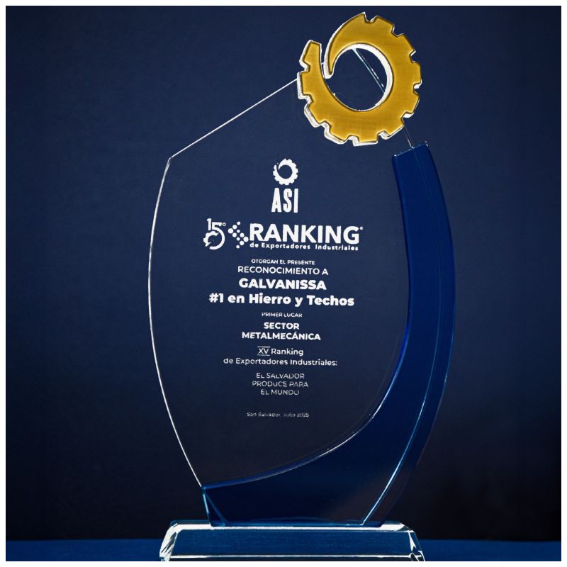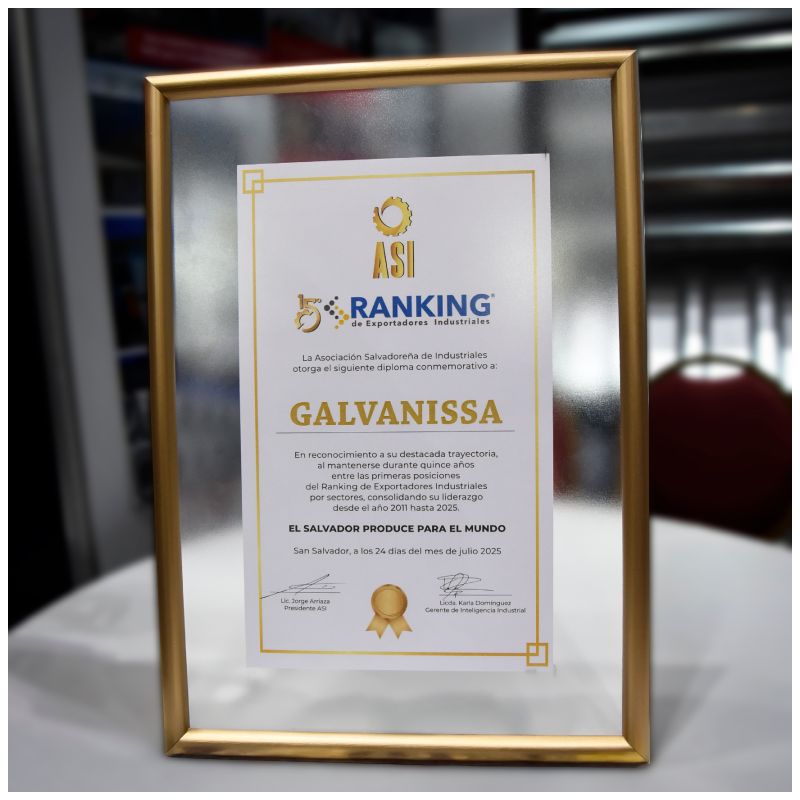 Galvanissa El Salvador, empresa de Grupo Ferromax, líder en la industria de la construcción y metal mecánica, ha sido reconocida una vez más por la Asociación Salvadoreña de Industriales (ASI) en su 15° edición del Ranking de Exportadores Industriales: “El Salvador produce para el Mundo”.