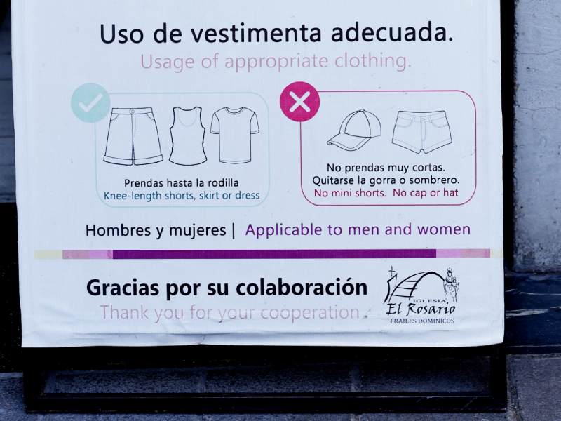 Aunque la medida puede parecer estricta, la iglesia El Rosario no es la única que solicita un protocolo de vestimenta a sus visitantes.