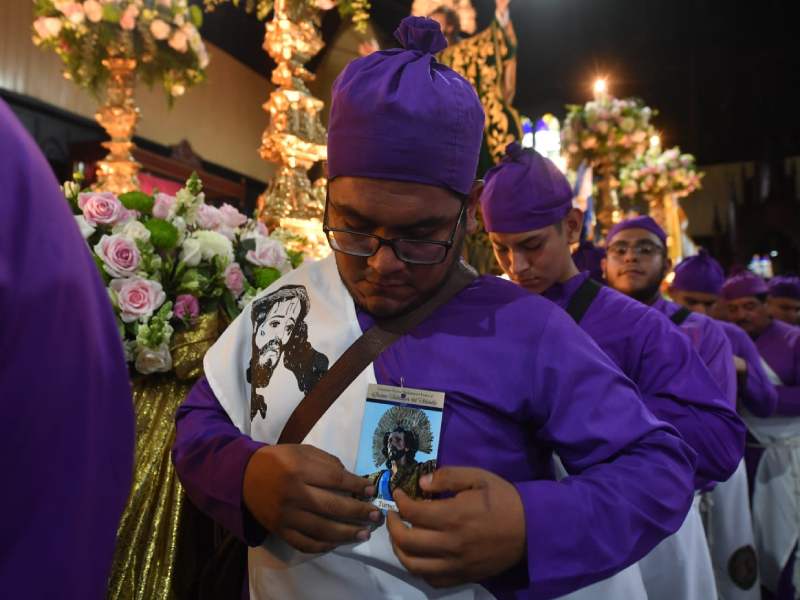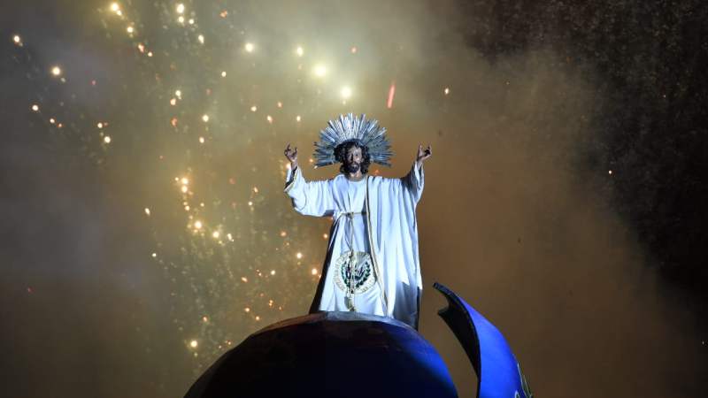 La antigua imagen del Divino Salvador, más conocida como "El Colocho", que data de 1777, fue trasladada desde Catedral a la Iglesia El Calvario y luego recorrió las calles del centro para llegar a la Basílica del Sagrado Corazón. |Foto EDH / Miguel Lemus