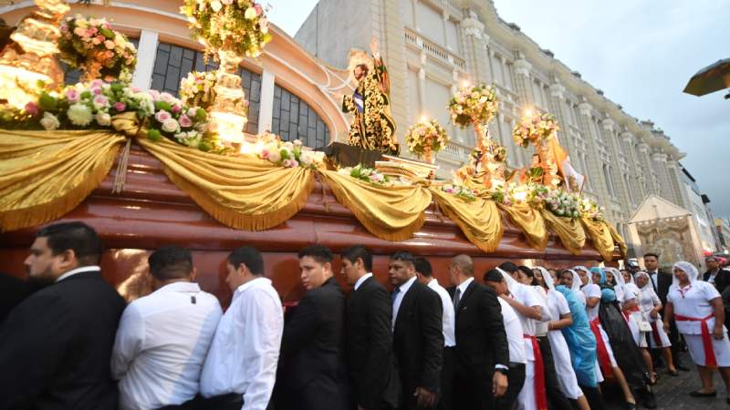 Cientos de fieles católicos participaron este martes 5 de agosto de la procesión y luego del acto de Transfiguración del Divino Salvador del Mundo, en las afueras de la Catedral Metropolitana y la Plaza Barrios del centro de San Salvador. |Foto EDH / Miguel Lemus