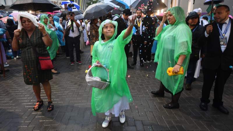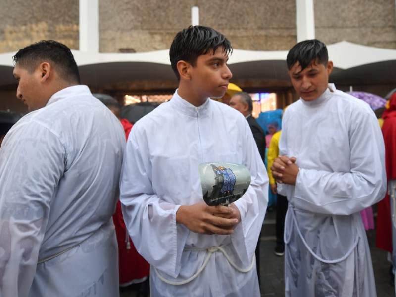 Bajo la lluvia católicos celebran transfiguración de Jesús