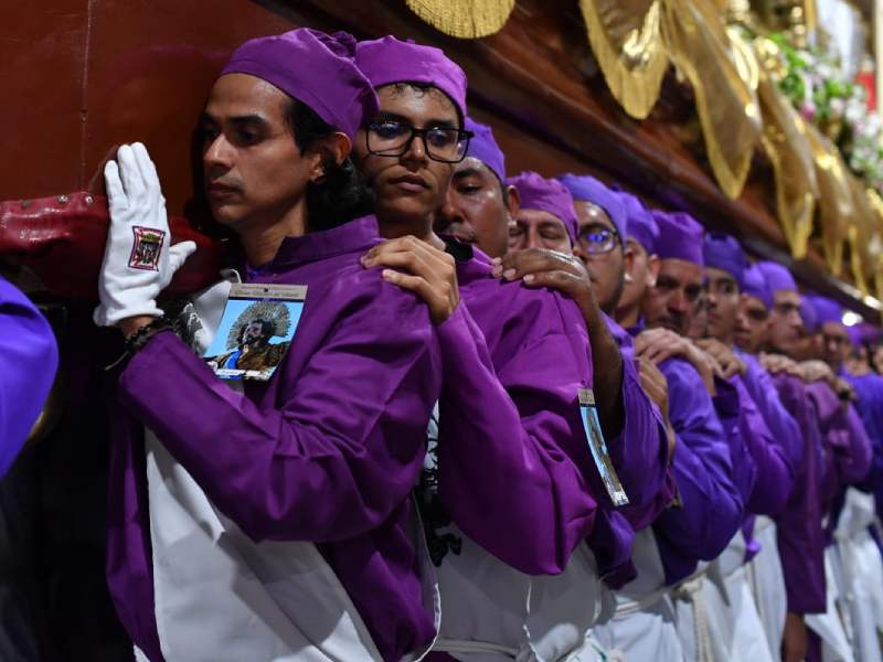 Uno de los cargadores se prepara para la procesión el interior de la Basílica del Sagrado Corazón. |Foto EDH / Miguel Lemus