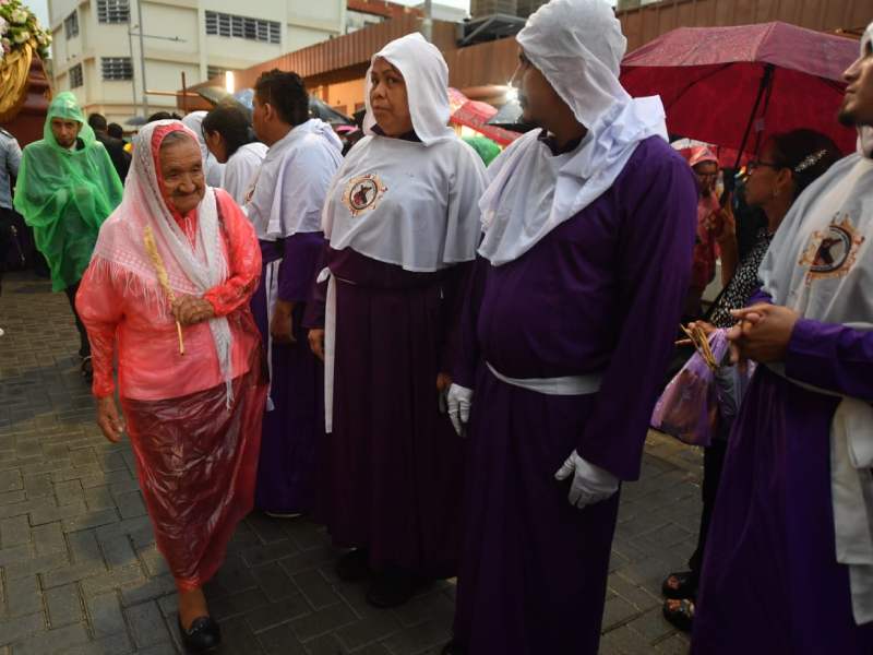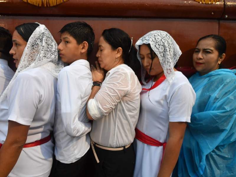 A pesar de la lluvia los servidores de la procesión se mantenían en su lugar. |Foto EDH / Miguel Lemus