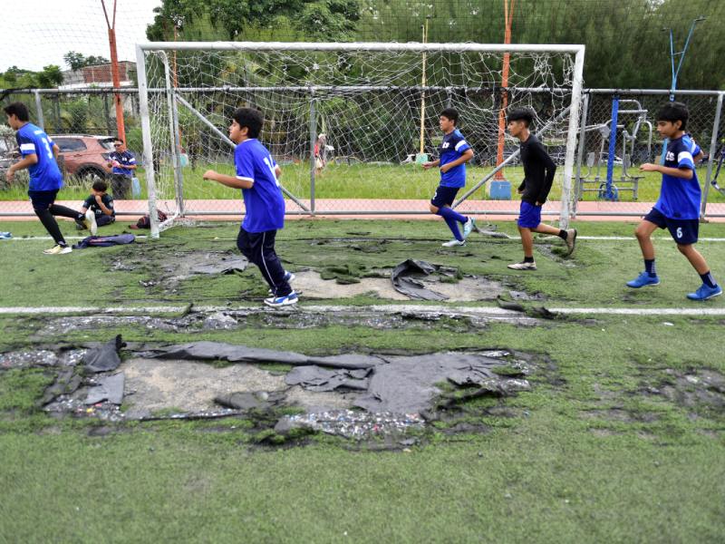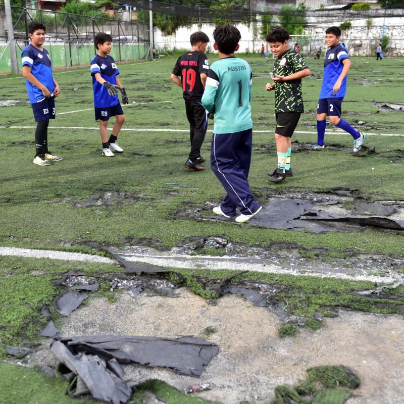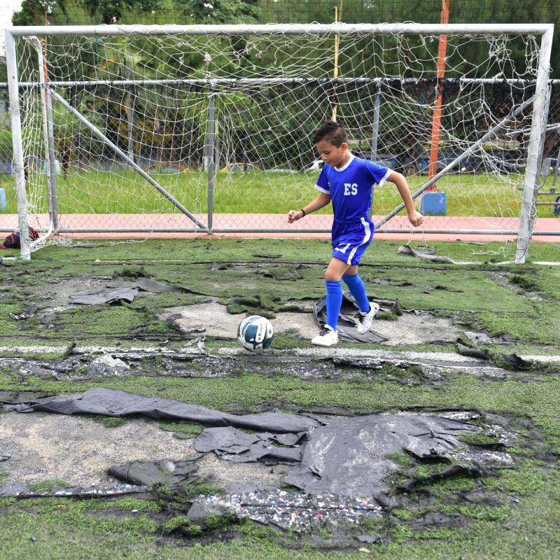 La escuelita donde los niños aprenden fútbol en una cancha destruida