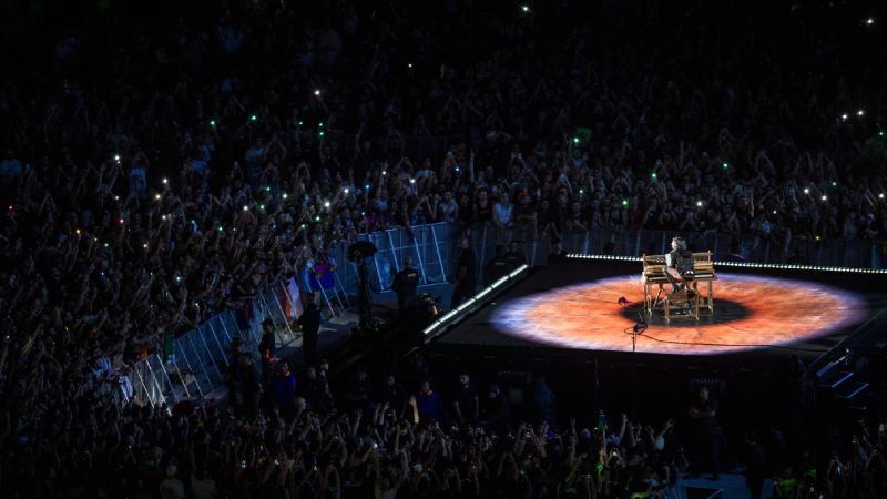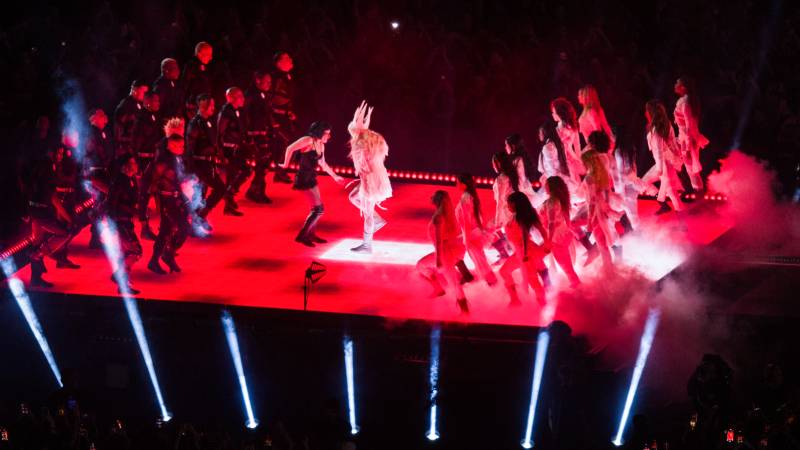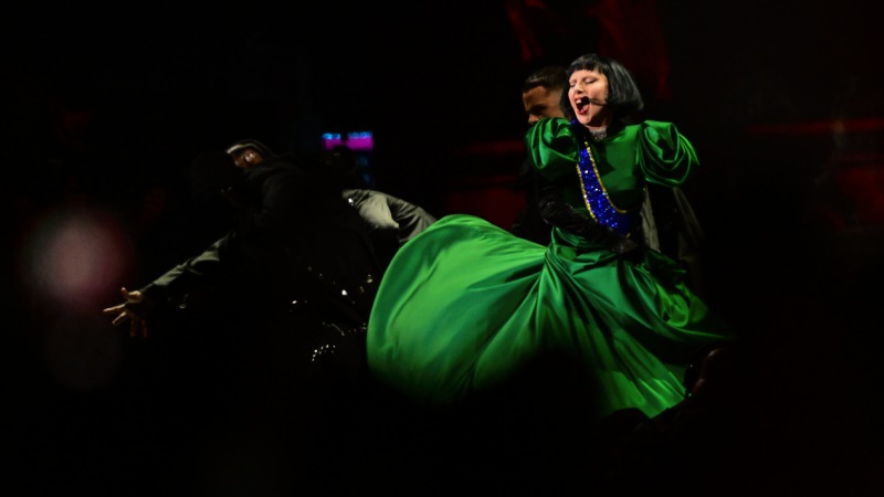 Uno de los momentos que más emociona a los fanaticos es cuando Lady Gaga interpreta "Poker Face" en un escenario estilo tablero, enfrentándose a una bailarina que interpreta a Lady Gaga del pasado. Foto EDH/ Daniel RAMALHO / AFP