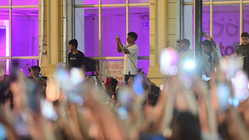 En las afueras del Teatro Nacional cientos de personas esperaron que al final del discurso, Nayib Bukele saliera a dirigir unas palabras. Foto EDH/ Francisco Rubio