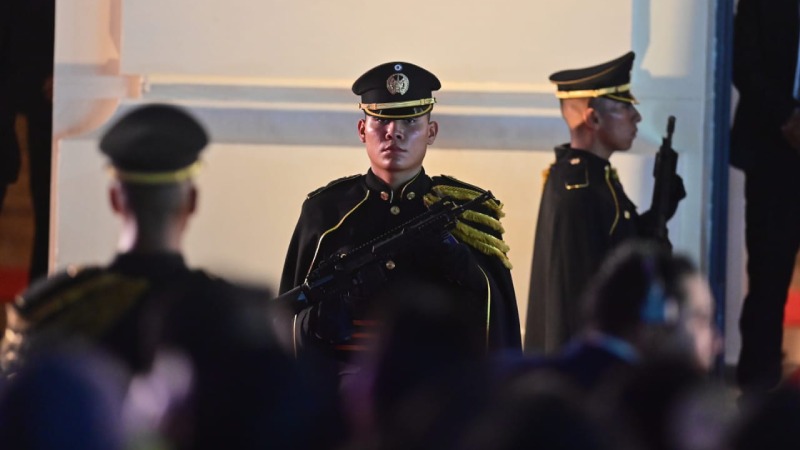 El ejercito militar se mantuvo en guardia con el uniforme de gala durante la actividad. Foto EDH/ Francisco Rubio