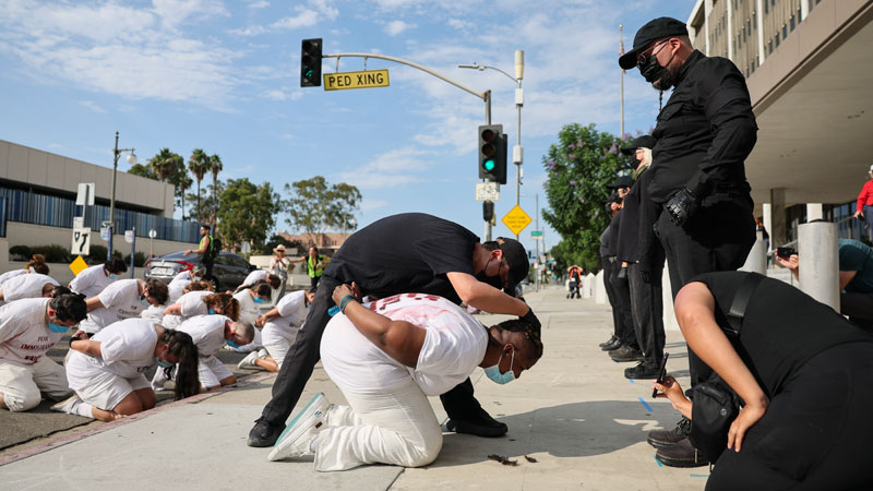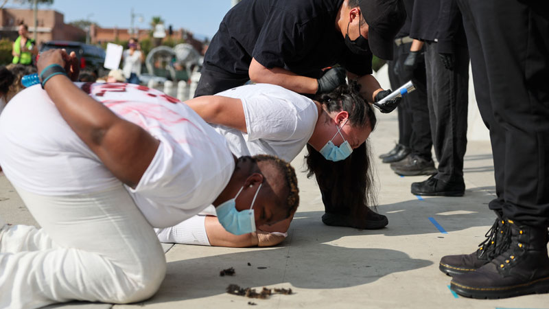 Bajo Arresto: Artistas interpretan vestidos como agentes de la ley, simulan un arresto como parte de "The Disappeared/Los Desaparecidos".