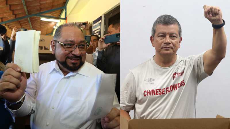 Usando una camisa con el estampado de "Chinese Flowers" y rodeados de medios, votaron los candidatos a la presidencia por los partidos del FMLN y ARENA