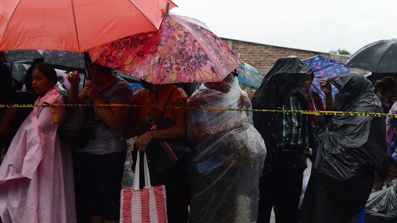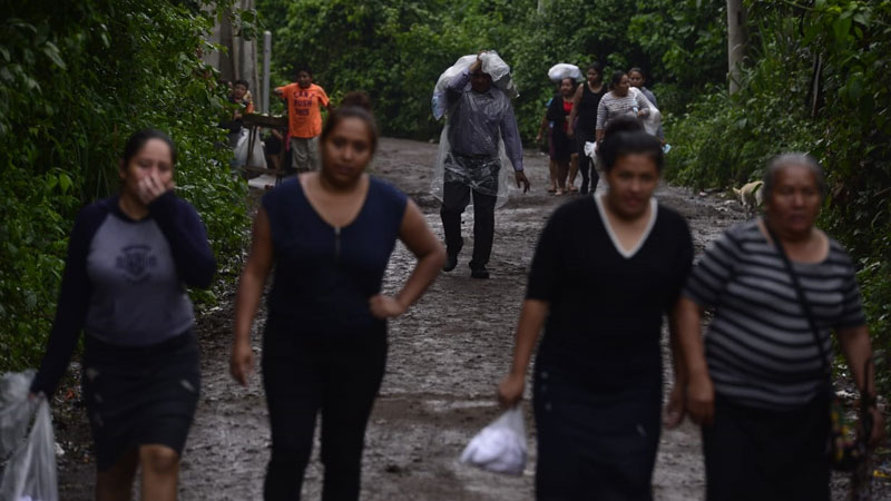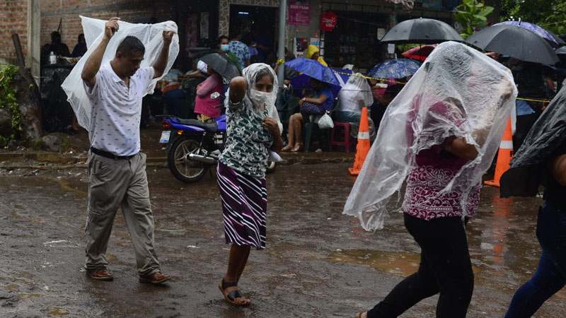 - Algunas mujeres se cubren con bolsas para protegerse de la lluvia. Foto Jessica Orellana