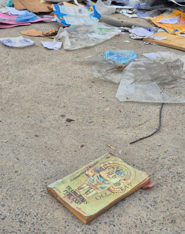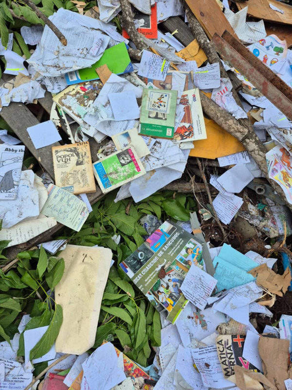 Libros tirados afuera del centro escolar. Foto EDH/ Cortesía