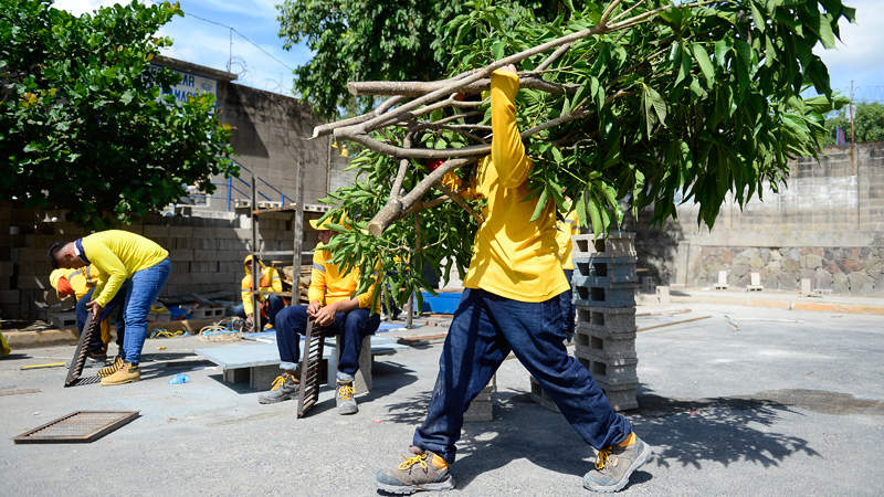 "Centros Penales apoya al MINED a través de su programa “Cero Ocio”, el cual consiste en que reos en fase de confianza hagan diversas labores en una institución con el fin de dejar un entorno atractivo a la comunidad educativa" expresaba la nota publicada. Foto EDH/ Jessica Orellana