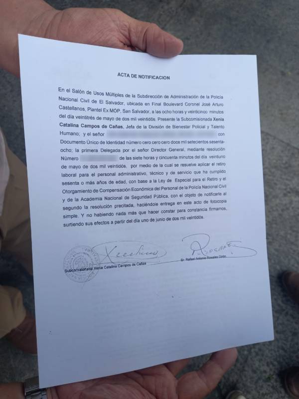 - Carta de notificación entregada a los agentes despedidos. Foto EDH/ Menly Cortez