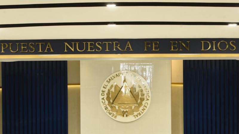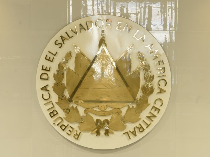 El antiguo y colorido escudo de El Salvador fue sustituido por uno dorado. Foto EDH/ Menly Gonzalez
