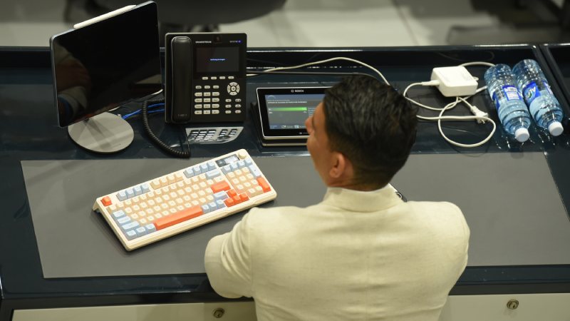 El diseño del balcón del espacio de la prensa cambió. El muro de cemento fue cambiado por uno de vidrio. Podría suponer un riesgo en caso de alguna cobertura en donde todos los medios y creadores de contenido acudan. Foto EDH/ Menly Gonzalez