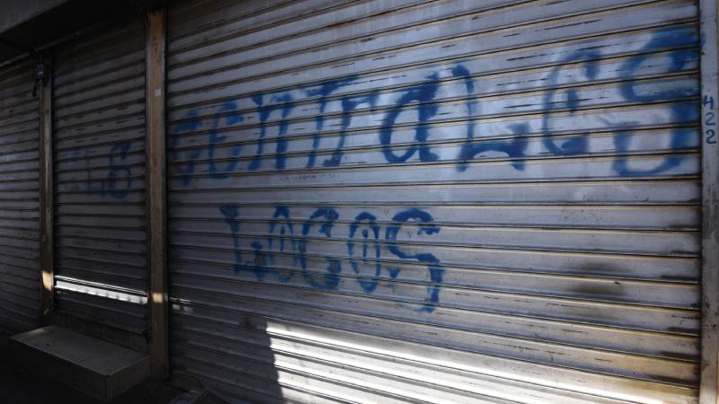 Al recorrer las calles desalojadas se puede observar que aún existen "grafitis" de las pandillas que atemorizaban a comerciantes y compradores en la zona. Foto EDH/ Menly Gonzalez