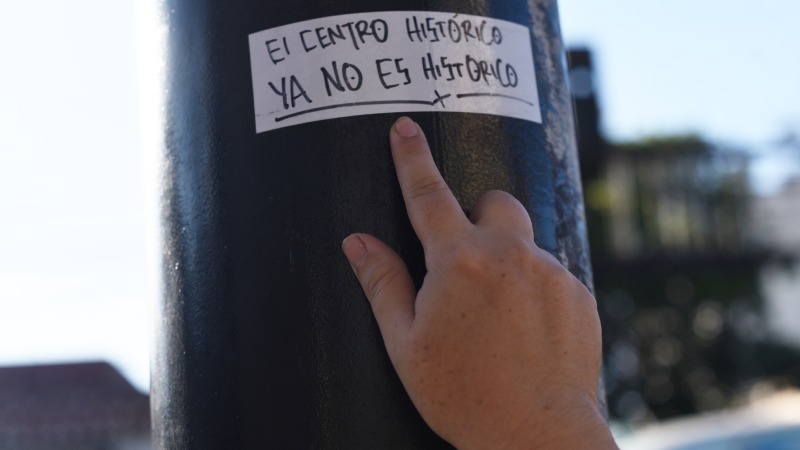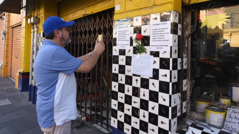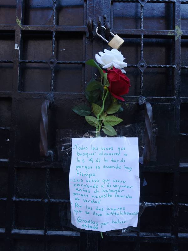 Una ciudadana tuvo la iniciativa de dejar flores y notas sobre sus mejores recuerdos en ese lugar como una manera de pronunciarse en contra de desplazamiento de negocios antiguos en el Centro de San Ssalvador. Foto EDH/ Menly Gonzalez