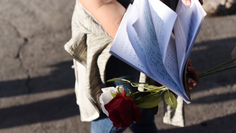 Flores y recuerdos en memoria a lugares desplazados en el Centro de San Salvador