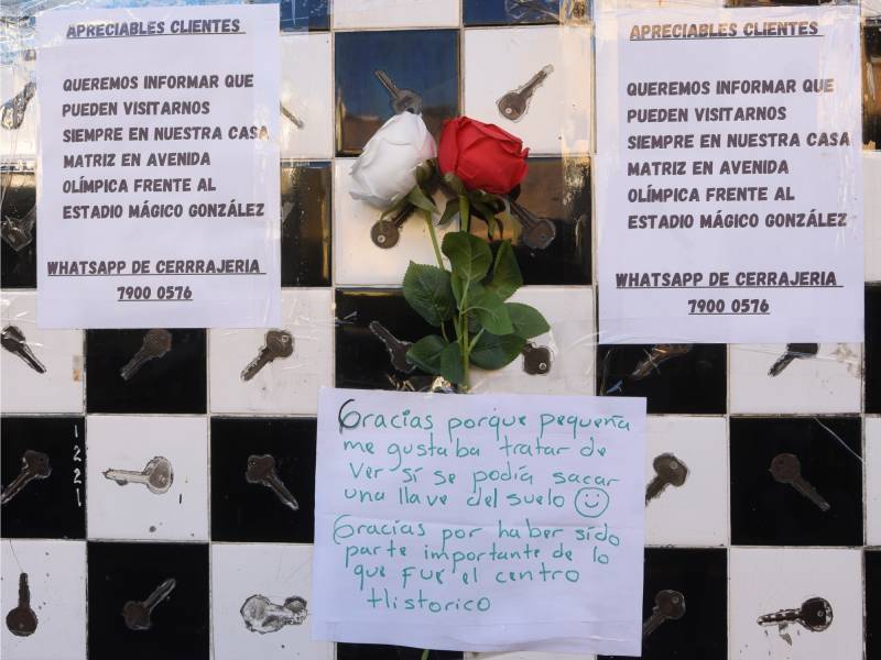 La nota instalada en la fachada de la cerrajería Cien Mil Llaves, provocó el cometido, que las personas compartieran sus recuerdos en el lugar y en otros espacios del centro. Foto EDH/ Menly Gonzalez