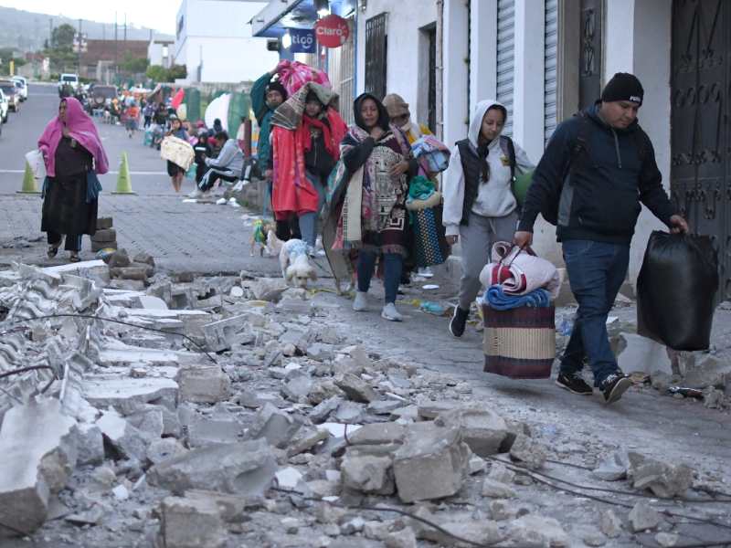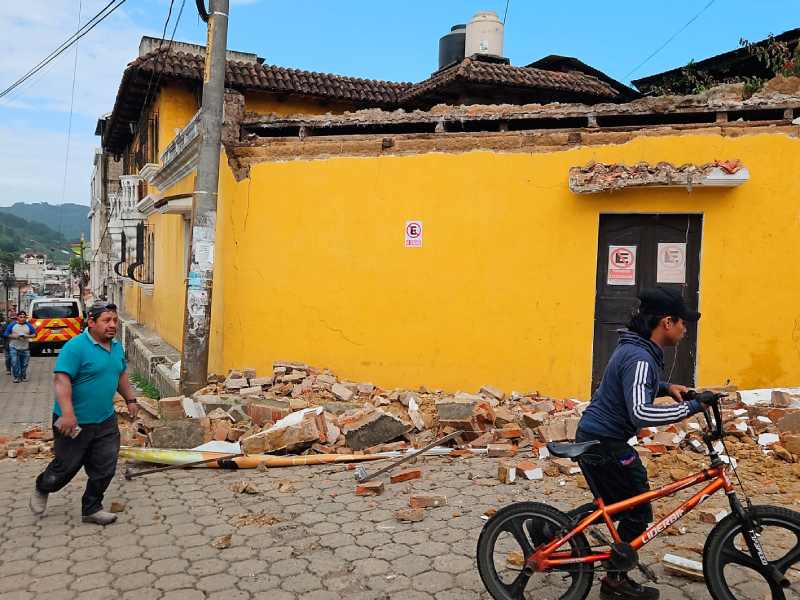 Personas caminan frente a una casa afectada por un temblor este martes, en Santa María de Jesús (Guatemala). Foto EDH/EFE BOMBEROS VOLUNTARIOS DE GUATEMALA