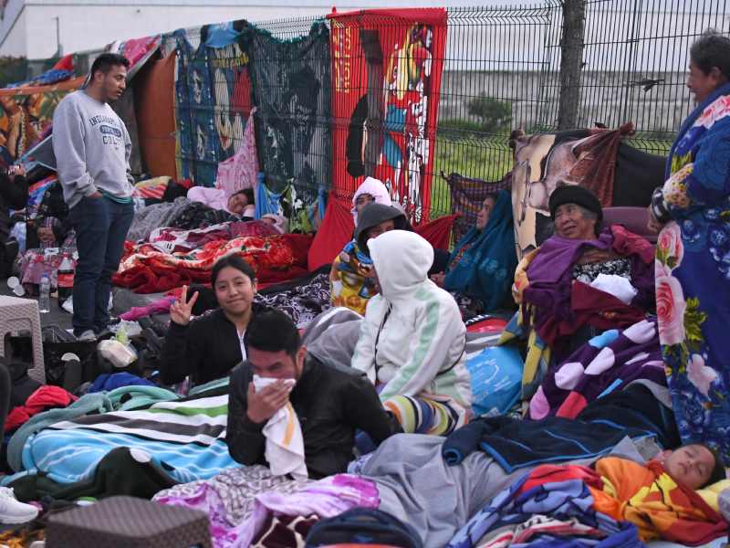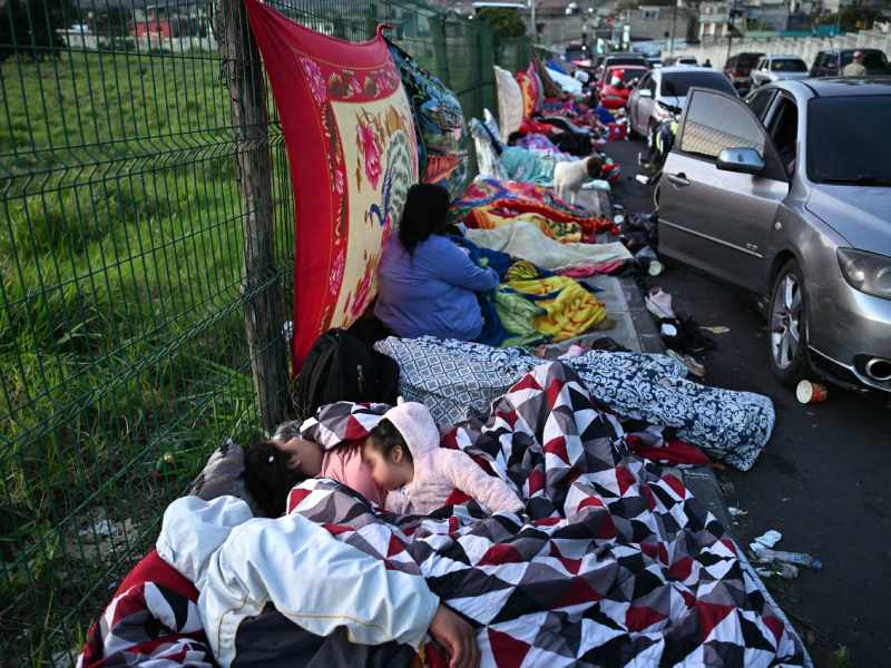 Muchos pobladores duermen en una calle tras los fuertes temblores este miércoles, en Palín (Guatemala). Foto EDH/EFE/Alex Cruz