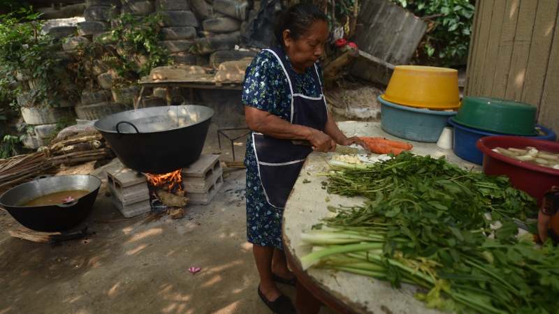 Desde temprano se comienzan a preparar platillos tradicionales y diversas sopas para compartir con los visitantes. Foto EDH / Miguel Lemus