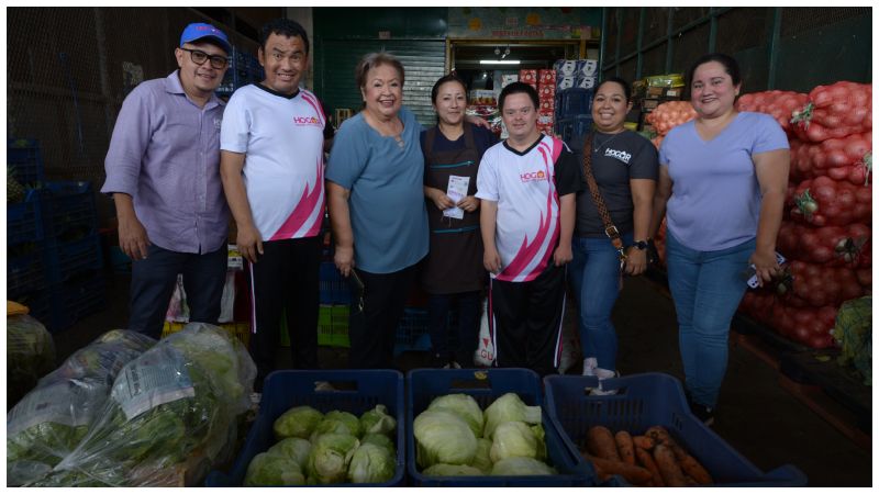 Personeros de la junta directiva del hogar, junto a niños y adolescentes con discapacidad que forman parte del centro, recorrieron los pasillos del populoso mercado para agradecer a los vendedores que colaboran de forma constante con donaciones de frutas, verduras, legumbres y otros insumos esenciales.