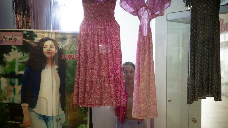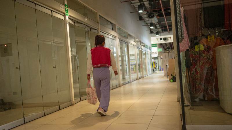 Su local luce ahora abandonado, con algunos vestidos colgados al lado de decenas de perchas vacías. En el centro comercial cerraron más de una decena de locales a causa de la extorsión.