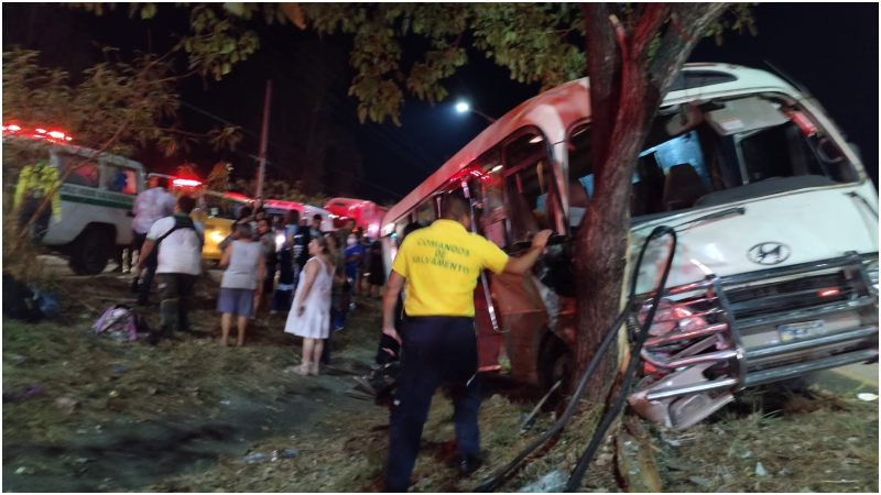 15 evangélicos heridos al chocar contra árbol en la autopista a Comalapa
