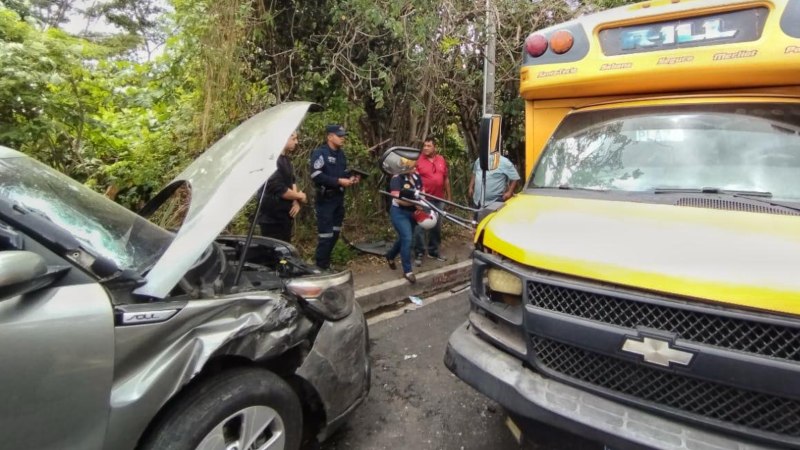 En otro accidente reportado por la PNC, un microbús de la ruta 1-LL colisionó contra un vehículo particular sobre la 10ª y 12ª calle Oriente, en Santa Tecla, La Libertad Sur.