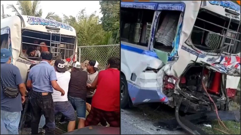 Un furgón chocó contra la parte trasera de un microbús de la Ruta 113 sobre el kilómetro 26 de la carretera Panamericana, en el distrito de Santa Cruz Michapa, Cuscatlán Sur, la tarde del domingo.