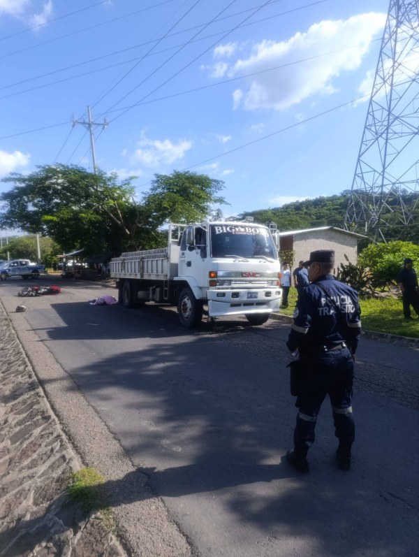 Una joven de 18 años que acompañaba a un motociclista murió la tarde del viernes luego de que impactara contra un camión en la calle hacia el cantón Talcualuya, en San Juan Opico, La Libertad.