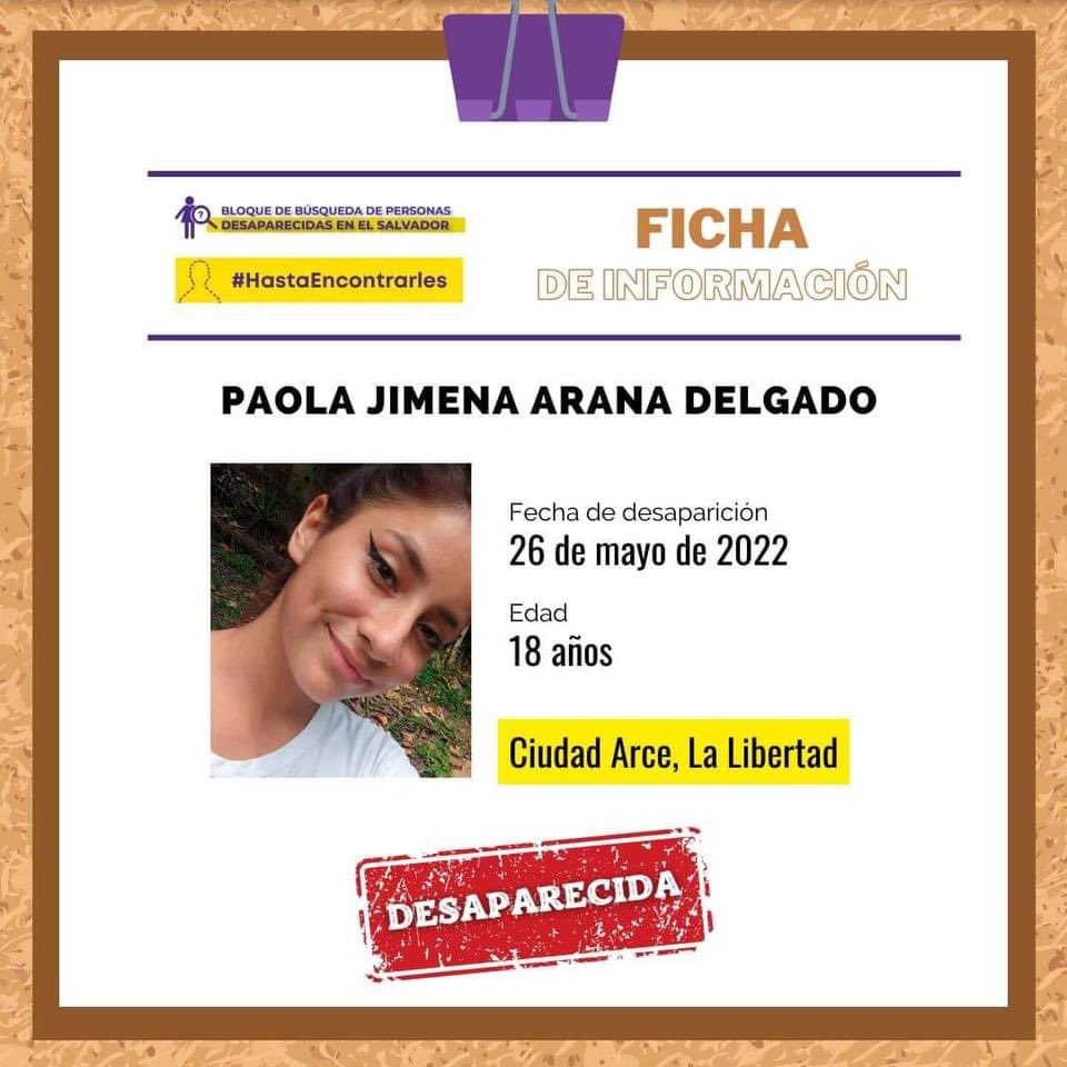Verónica Delgado es una madre que no ha descansado desde ese 26 de mayo del año 2022, cuando su hija, Paola Jimena Arana Delgado, de 18 años, ya no regresó a su vivienda. La joven fue desaparecida en Ciudad Arce, mientras iba a pasar consulta médica desde el cantón La Joyita, de ese mismo municipio, un mes después de ser capturada durante los primeros días del régimen de excepción.